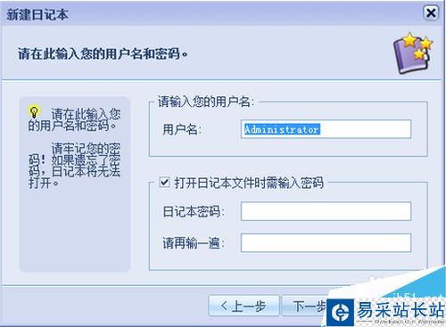 新建日記本之用戶名密碼