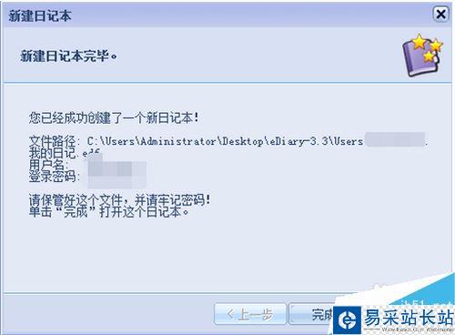 點擊下一步,此時eDiary會將前面步驟配置完成的配置信息,顯示到當前步驟中來,記錄下來有用的信息后,點擊完成即可完成eDiary新建日記本。下面就可以進入eDiary日記主界面開始寫電子日記了。Ediary電子日記本使用教程 Ediary如何寫日記就為大家分享到這。