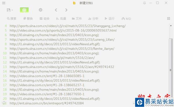 在網頁里面批量選中網頁鏈接后,將其拖拽到編輯器窗口進行釋放,就可以將網頁鏈接批量提取出來。這樣對于批量下載網頁和文件都非常實用(圖3)。