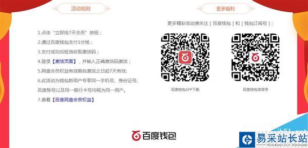 根據(jù)活動(dòng)規(guī)則,只需要點(diǎn)此,通過(guò)百度錢包支付1分錢,就會(huì)收到激活碼短信,網(wǎng)盤會(huì)員權(quán)益有效期自激活之日起7天有效。