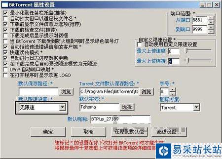 小提示:關于上傳速度,盡量不要設置為無限制,因為如果上傳速度過大,也會影響到下載的速度,一般設置在10K左右就好。雖然這有違背BT的宗旨,但為了下載速度,我們必須做出相應的取舍。