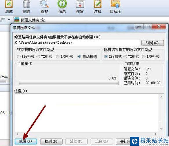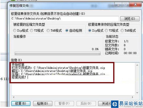 (2)設定好后點擊“修復”確定,好壓就會開始對受損的壓縮文件進行修復,并會以對話框的形式顯示修復的全過程。