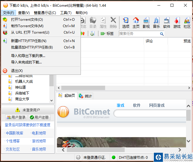 需要用到的軟件也很簡單,像BitComet等大家常用的BT下載軟件就行,帶生成種子文件功能的就行。啟動軟件之后,點擊左上角的“文件-制作torrent文件”,
