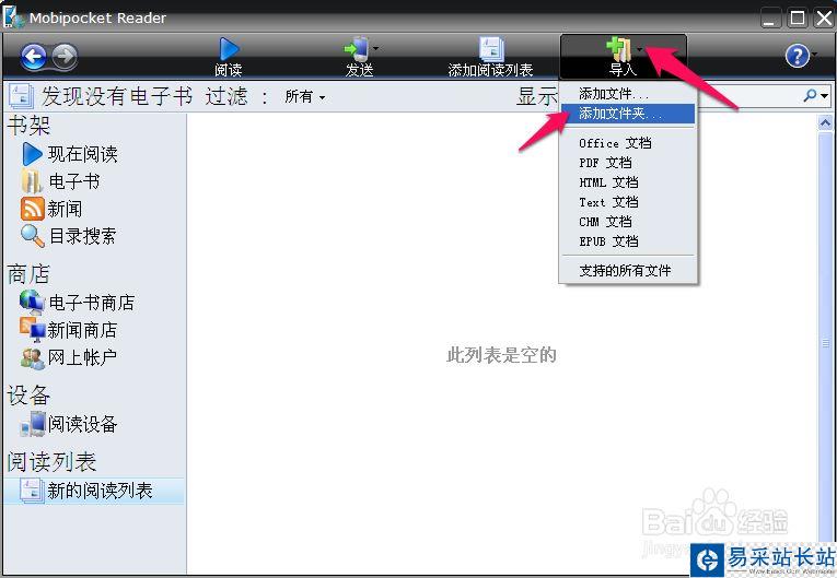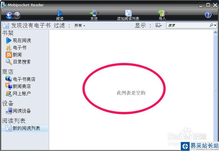 打開剛下載的mobipocket reader,里面現(xiàn)在內(nèi)容為空。