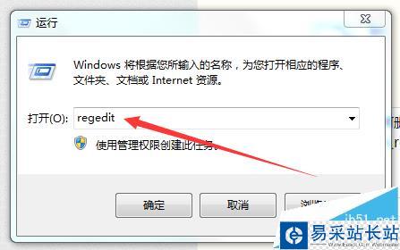 5、下面說如何刪除winrar的使用記錄。點擊開始按鈕,在搜索欄中搜索“運行”對話框,輸入regedit,打開注冊表編輯器。