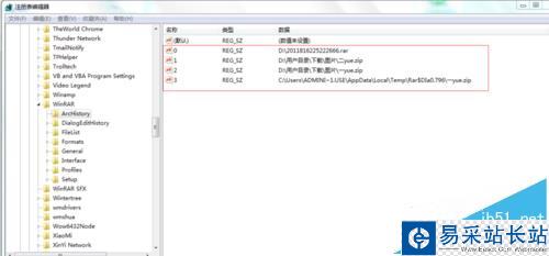 7、右邊的界面中保留了以往winrar的使用記錄,選中默認以外的,點擊鼠標右鍵刪除即可。