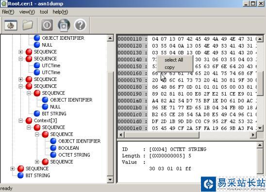 進(jìn)行過Asn1編碼的兄弟們都比較清除這件事情,比如x.509證書中的擴(kuò)展信息的編碼作為OCTSTRING在證書中,沒有簡單的辦法查看他的結(jié)構(gòu),當(dāng)時我在作編碼工作的時候,沒有好的工具,(使用的是dos下dumpasn1),擴(kuò)展的編碼不能展開,想想當(dāng)時,好麻煩呀,把偏移量計算出來,計算長度,另存成文件…….所有現(xiàn)在有了view item content at new window這個功能,簡直方便多了。