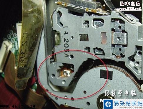 在光驅組件里找到調節電阻。如果學過電工電子學,應該會知道電位器大致長啥樣。如果沒學過也不要緊,看圖照圖片這種長相找調節電阻。有的光驅調節電阻在激光頭背面,有的在側面,當然還有部分光驅找不到調節電阻。