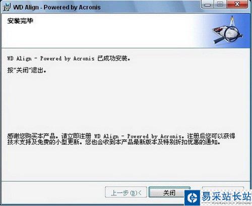 8、 安裝結束后點擊“關閉”,桌面上會出現“WD Align”的快捷方式