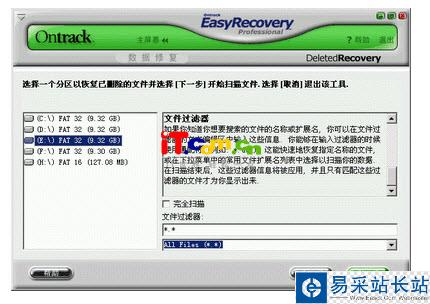 右邊的全面掃描一般不需要選擇,如果你接下來恢復數據時候發現不是所有被刪除的文件都能被恢復,那么可以選擇這個選項再重新恢復一遍。