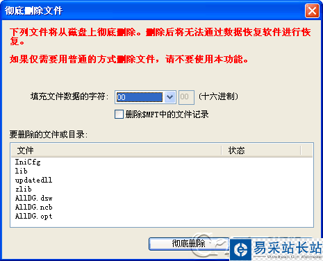 選擇“徹底刪除文件”菜單項(xiàng),程序打開如下的對(duì)話框: