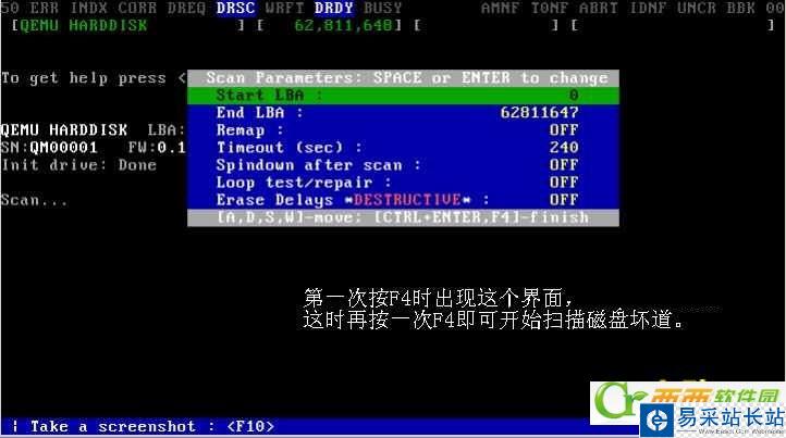第5步:選擇需要掃描的硬盤后,而不是馬上就開始掃描的,而是需要按兩下F4才開始掃描磁盤。