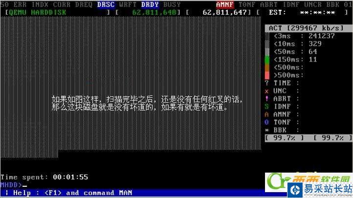 一般光盤或U盤系統都有此工具,大家可以直接在工具箱中直接找到MHDD磁盤掃描工具。