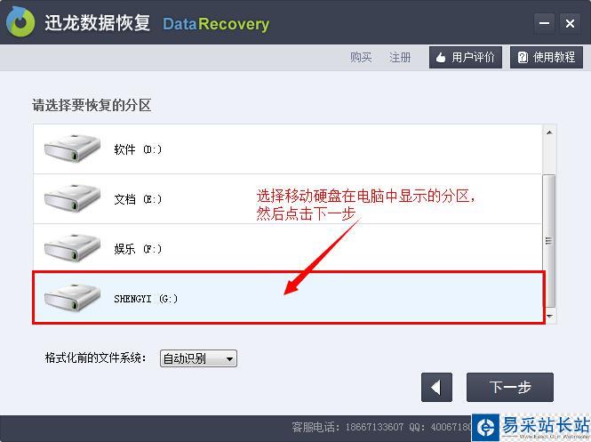 第三步:選擇需要恢復數據的移動硬盤并點擊“下一步”按鈕。