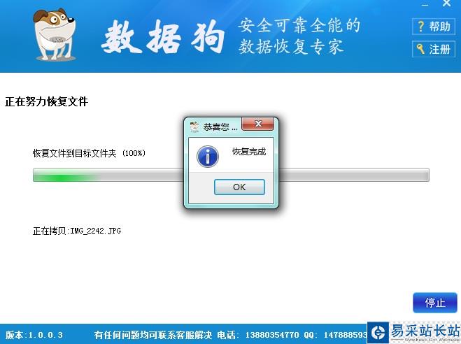 第五步:等待數(shù)據(jù)恢復(fù)完成,完成后點擊OK按鈕,如下圖所示。