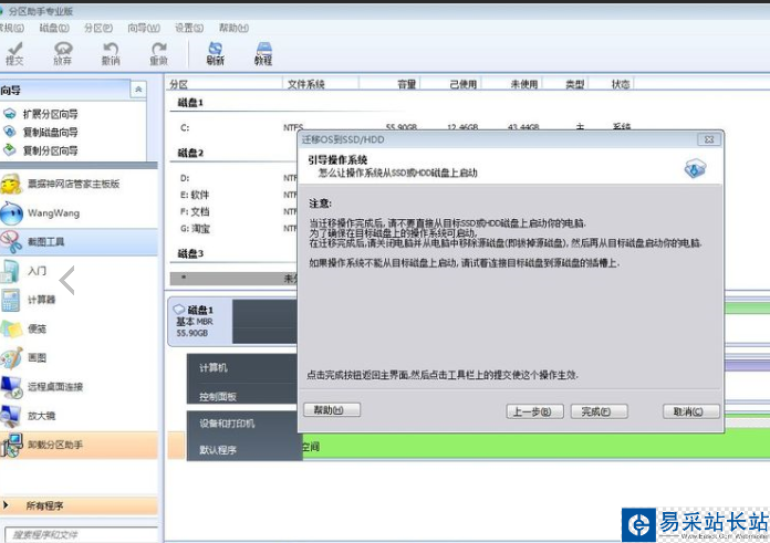 步驟一:打開你的分區助手,找到向導下面的遷移OS到SSD/HDD