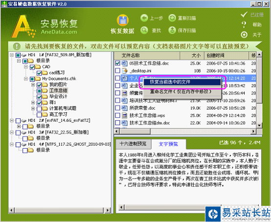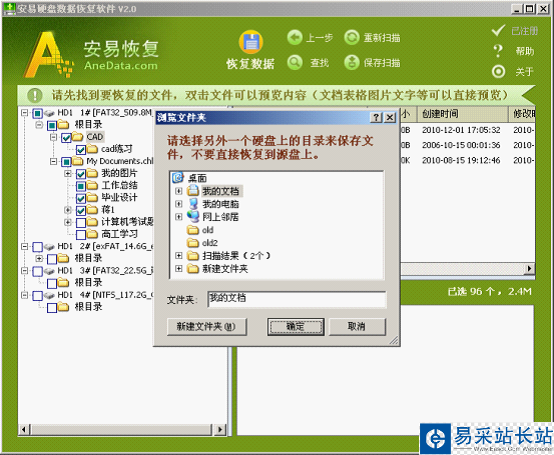 恢復目錄功能。勾上要恢復的目錄和文件,點“恢復數據”按鈕,就可以把數據恢復到別的盤里面。