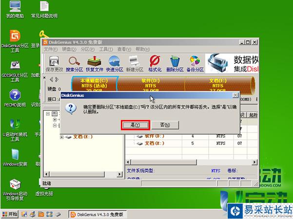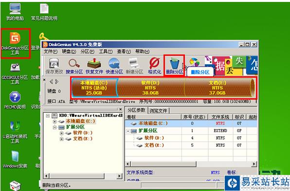 2、雙擊打開DiskGenius分區工具,在彈出的工具窗口中單擊選擇分區,再點擊“刪除分區”按鈕