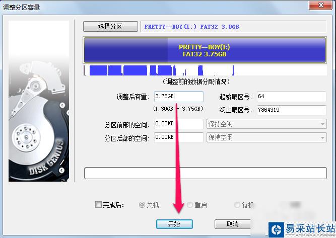 7、diskgenius設置好容量之后我們點擊開始,等diskgenius合并分區處理完之后就可以了