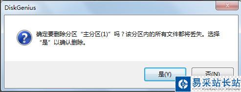 3、此時diskgenius便會提示刪除該分區文件將丟失,我們提前已經備份好文件了,所以點擊是就可以了