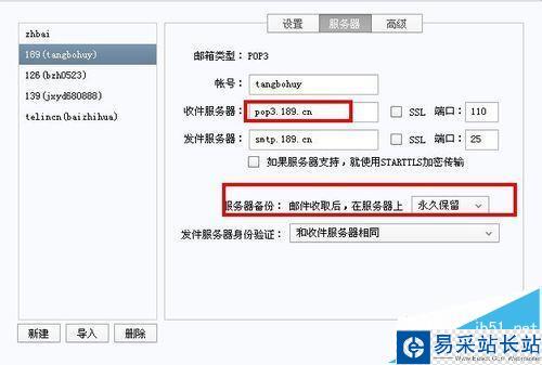 3、重要的設(shè)置是在服務(wù)器這里,有的版本是在同步或其他,前面的操作都差不多。我們只要找到服務(wù)器備份本地這項(xiàng)。我們可以看到這個(gè)接收服務(wù)器是pop3,所以只要設(shè)置永久保留就可以了,服務(wù)器刪除對(duì)本來(lái)不影響。