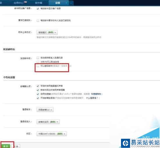 3、然后點擊右下方的保存按鈕。重新登陸郵箱,打開已發送文件夾
