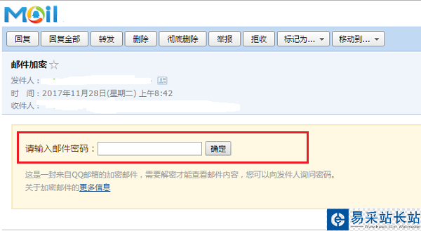 6、接收這封郵件的時候,會出現需要輸入密碼才能查看郵件內容,如下圖所示: