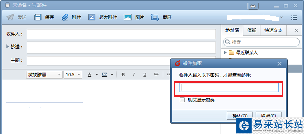 4、輸入郵件加密的密碼,點擊確認,可以明文顯示密碼,以免密碼輸入錯誤,點擊確認,如下圖所示: