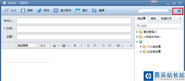 2、進去寫郵件的界面之后,點擊右上方的列表菜單圖標,如下圖所示: