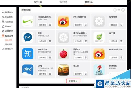 3、在管理中心面板左側菜單欄,依次點擊“我的應用”——“我的應用”(兩個按鈕名稱一樣^.^)。