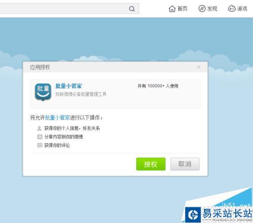 6、接下來我們在彈出的授權面板頁面,點擊“授權”按鈕。