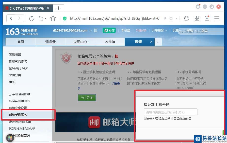 點擊郵箱手機服務——馬上開通——輸入手機號碼——獲取驗證碼——輸入驗證碼——完成綁定;開啟手機驗證之后每次登陸都會收到短信提醒,方便檢測異常登錄。