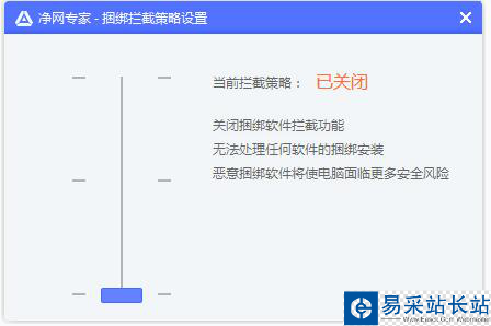c) 關(guān)閉策略:選擇該策略,將無(wú)法阻止任何捆綁軟件的安裝,稍有不慎又將“中招”。所以,我們強(qiáng)烈建議不要關(guān)閉攔截策略。
