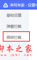 2、接著在在設(shè)置中心界面的左側(cè)打開(kāi)“捆綁攔截”。如下圖所示: