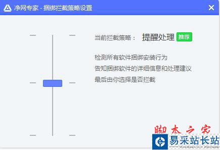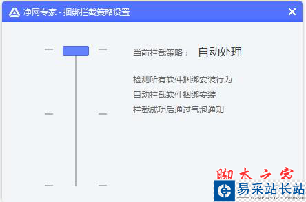 b) 自動(dòng)處理策略:選擇該策略,我們將自動(dòng)攔截捆綁軟件的安裝,不再詢問(wèn)。