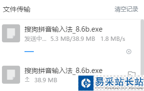 4、點擊文件傳輸按鈕可見搜狗拼音輸入法這個軟件的發送情況。