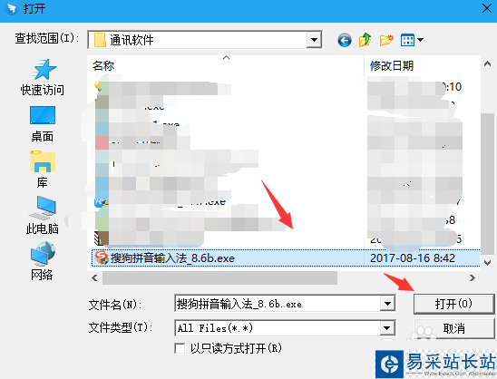 3、在打開窗口找到需要發送的文件選中它,點擊打開按鈕,詳見下圖。