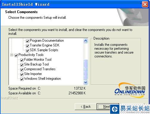 CuteFtp Pro8.2安裝起始畫面(對某些功能和工具可以選擇進行安裝)