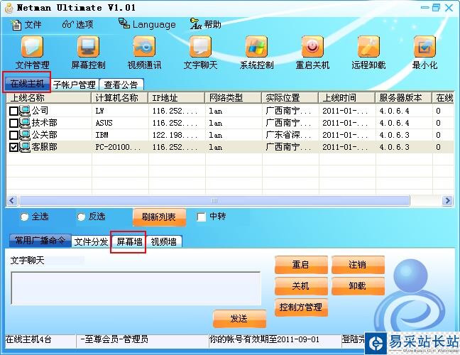 復選多臺計算機,點擊“屏幕墻”,可同時查看多臺計算機屏幕!