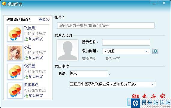 點擊添加好友就會彈出一個對話框!如圖所示: