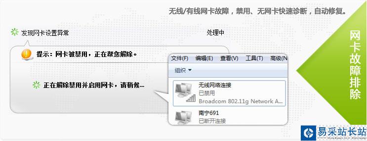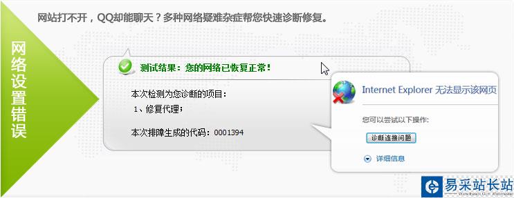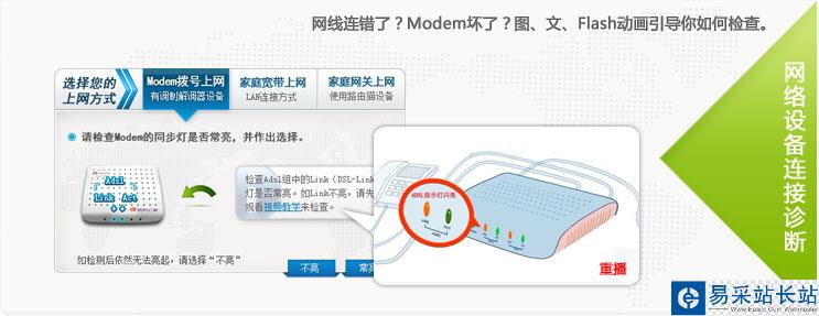 當(dāng)您的網(wǎng)絡(luò)出現(xiàn)故障時(shí),例如IE無(wú)法打開(kāi)網(wǎng)頁(yè)、忽然斷線、無(wú)法正常撥號(hào),10000管家就會(huì)自動(dòng)彈出提示并幫您診斷故障點(diǎn)。您只需按照排障向?qū)У闹敢纯烧业焦收显虿⑿迯?fù)網(wǎng)絡(luò)。