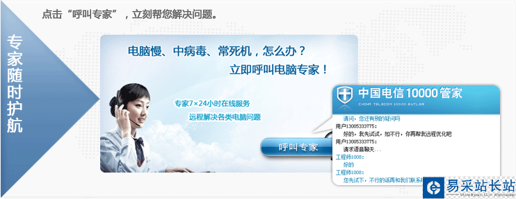 另外,10000管家還有專(zhuān)家遠(yuǎn)程電腦維修服務(wù),7×24小時(shí)專(zhuān)家在線問(wèn)診,幫您解決各類(lèi)電腦故障。如電腦常死機(jī)、常報(bào)錯(cuò)、運(yùn)行慢、中了殺不掉的病毒等問(wèn)題,專(zhuān)家都可以通過(guò)遠(yuǎn)程操作,幫您快速解決。