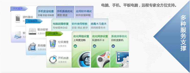 電腦慢、玩游戲卡?手機(jī)不知道怎么安裝軟件?隨時(shí)呼叫專(zhuān)家遠(yuǎn)程解決。無(wú)需出門(mén)在家完成!