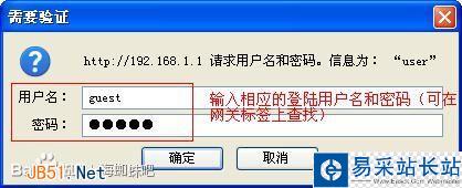 如上圖所示;電腦和網關之間的網絡是可以連通的。在瀏覽器的地址欄中,輸入“192.168.1.1”就會彈出一個輸入網關用戶名和密碼的登陸框