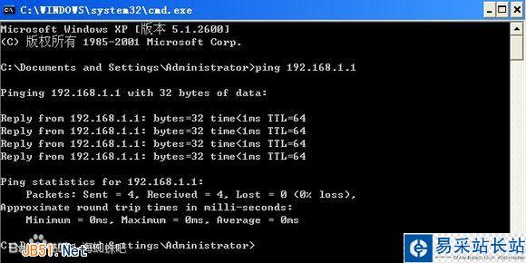 如上圖所示,當點擊確定后,在系統終端里輸入“ping 192.168.1.1”并回車,測試電腦和路由管理地址是否可以連通。如下圖所示: