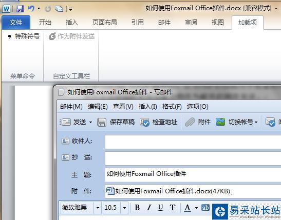 注:Foxmail Microsoft Office插件僅支持Microsoft Office 2003、2007和2010系列軟件的Word、Excel和PowerPoint。