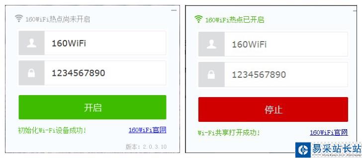 第二,界面簡潔,無廣告。打開160WiFi,主界面顯示在桌面中央,界面很小。Wifi初始用戶名和密碼簡單明了,要修改也容易,在未開啟的時候,直接在界面上改動即可。全界面無廣告,沒有多余的logo,只專注一件事,努力使用戶能夠開啟wifi共享。