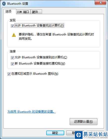 請確保“允許Bluetooth設備查找此計算機”是選中的,否則手機會搜索不到您的電腦。
