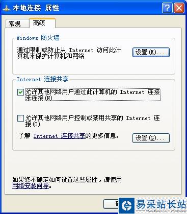 之后【右擊本地連接】---【屬性】--【-高級選項】---勾選Internet連接共享的“【允許其他網(wǎng)絡(luò)用戶】……”---【-確定】。