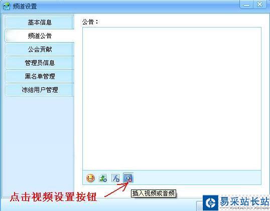 首先,頻道積分需要達到3000積分。當頻道積分滿3000之后,既可以在頻道公告當中插入圖片、Flash或音頻及視頻文件了。